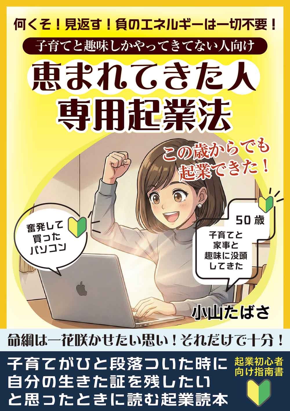 50歳まで子育ての家事、趣味だけに没頭してきた私が50を過ぎて、子育てがひと段落ついた時、人生の最後に一花咲かせたいという思いが立ち上がり、起業を考えるも、周りの起業家と言われる人たちの雰囲気に圧倒され、何も行動できずにいた。